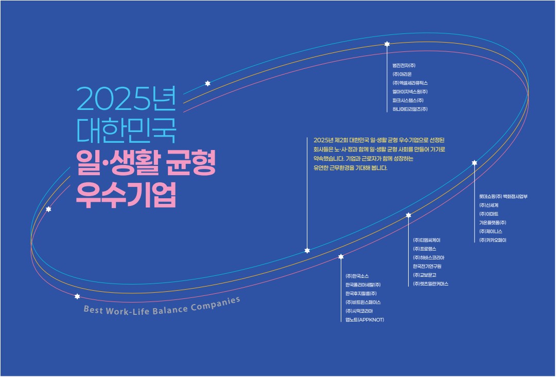 고용노동부가 선정한 「2025 대한민국 일·생활 균형 우수기업 사례집」을 통해 우리 조직에 어울리는 일·생활 균형 제도를 살펴보고 적용할 수 있는 아이디어를 얻어보세요!